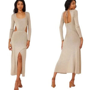 MISA Los Angeles Minka Cutout Gold Metallic Knit Midi Dress Size XS NWT