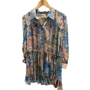 MISA Los Angeles Mita Bohemian Patchwork Printed Shirtdress Batik Small NWT $380