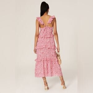 MISA Los Angeles Morrison Floral Ruffle Midi Dress SMALL