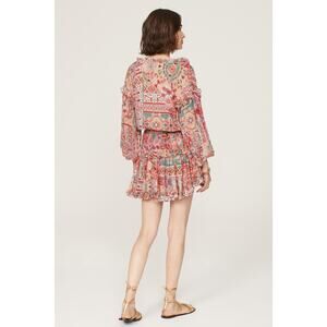 MISA Los Angeles Multicolored Metallic Split Neck Long Sleeve Elena Dress Size S