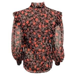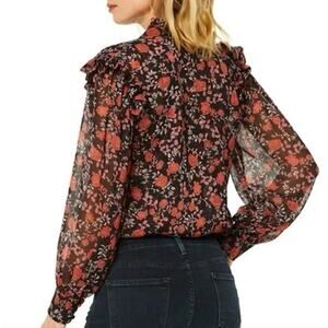 MISA Los Angeles NWT Red & Black Floral Ruffle Blouse Top – Medium