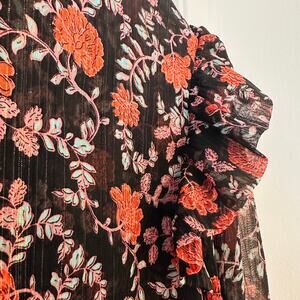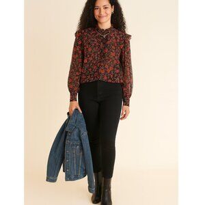 MISA Los Angeles NWT Red & Black Floral Ruffle Blouse Top – Medium
