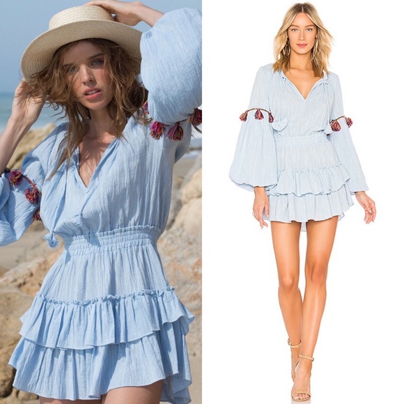 MISA Los Angeles Neila Balloon Sleeve Dress in Blue Size XS