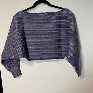 Ribbed knit fabric with boatneck styling. Dolman sleeves.