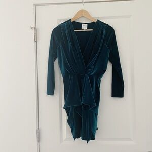MISA Los Angeles Ophelia Shirred Velvet Mini Dress Teal