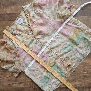 MISA Los Angeles Para Chiffon Button Up Top, S, Printemps Patchwork
