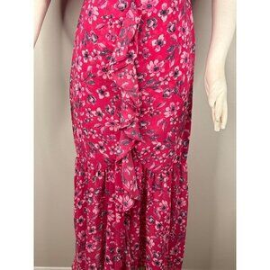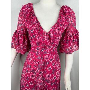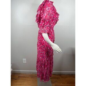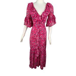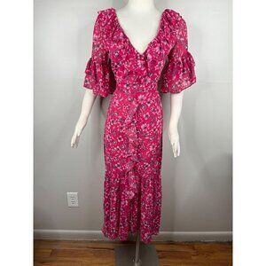 MISA Los Angeles Pink Floral Midi Dress Size XS S Flowy Short Sleeve