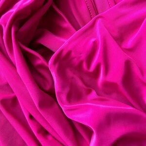 This dress has only been worn once and has been dry cleaned. It is in excellent condition, aside from safety pin holes near the cleavage. See photos for reference.