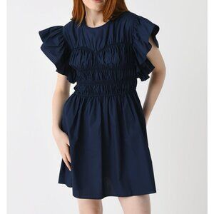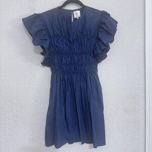 MISA Los Angeles Radha Ruffle Mini Poplin Sleeveless Dress in Navy-Size XS NWT