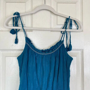 MISA Los Angeles Rosella Tiered Mini Dress Turquoise Blue Size Small Metallic