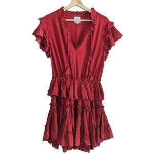 MISA Los Angeles Ruffled Rust Red Linen Mini Dress, Women's Size Small.