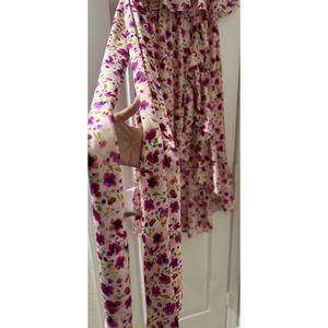Excellent Condition Gorgeous Dress, Worn One time, Material: Viscose Blend Dry Clean only! Partially lined, Elasticized neckline, Smocked waist with tie closure. Neckline to shortest hem measures approx 25" and to longest hem approx 47" in length. So Barbie!