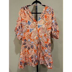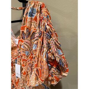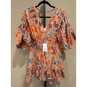 MISA Los Angeles Sari Floral Puff Sleeve Dress in Tangerine Floral Size S