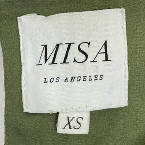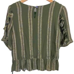 MISA Los Angeles Sedona Ruffle Blouse Womens XS Olive Green Metallic Gold Stripe