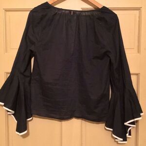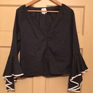 Elevate your style with this elegant navy blue top. Featuring flared sleeves and a chic design, it's perfect for any occasion.