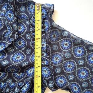 MISA Los Angeles XS Sheer Anita Button Front Blouse Top in Blue Valencia Tile