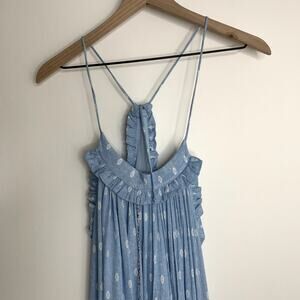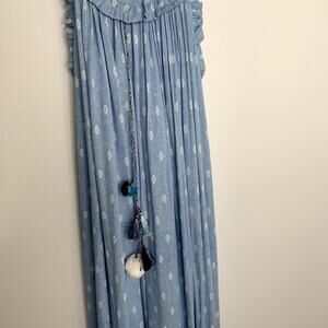 MISA Los Angeles Tassel Thale Maxi Dress Blue Womens Small