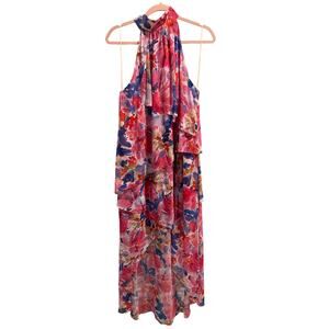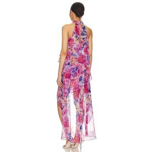 MISA Los Angeles Victorine High Low Full Bloom Halter Chiffon Dress L NWT $460