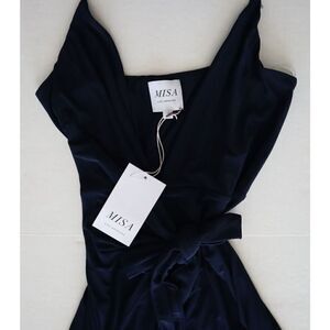 MISA Los Angeles Women's Sz S Navy Blue Veronika Wrap Front Maxi Dress
