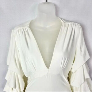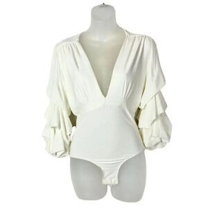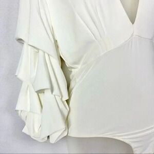 MISA Los Angeles X REVOLVE Plunging V-Neck Ruffle Long Sleeve Bodysuit S