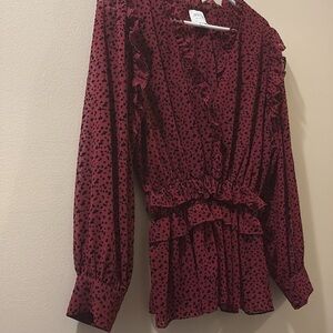 MISA Los Angeles burgundy Ruffle Blouse - large - long sleeve - deep V neck