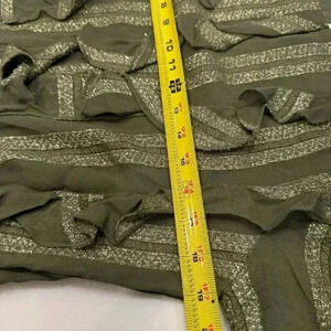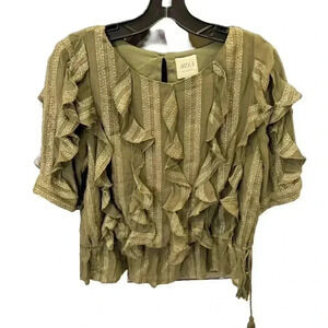MISA Los Angeles green w metallic stripe short sleeve ruffle blouse size XS
