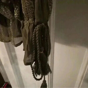 Excellent condition. Key hole button back. Drawstring button with tassles
