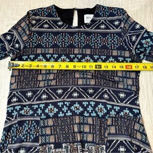 MISA Los Angeles navy blue geometric Pyramid graphic print shift dress XL Boho