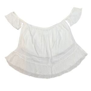 MISA Los Angeles Anais Off the Shoulder Gauzy Top Ruffle Ivory White Size Medium. Partially lined, light, airy, elasticized top and sleeves. Revolve. short flutter sleeves, boho, relaxed, crinkle. Excellent condition. See photos for details and unstretched measurements. Shop my closet and bundle multiple items for discounts and one shipping fee!