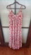 Red and cream printed chiffon (100% Polyester). Maxi. Sleeveless. V-neckline. 51.5" from shoulder to hemline. USA.
