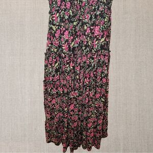 MISA Los Angeles Hollen maxi dress. Worn once. No flaws. The Hollen dress is the perfect trans-seasonal silhouette cut from a floral print chiffon. The top features a delicate ruffle trim along the split-tie neckline with our signature petal ties while tiered ruffles decorate the maxi skirt. A smocked elastic waistband provides ideal comfort and a flattering silhouette. A perfect day-to evening dress.