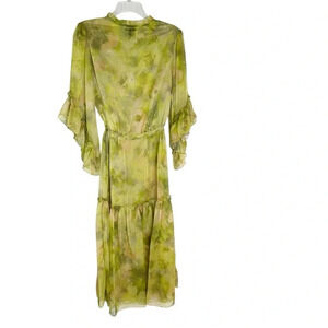 MISA Marcele Chartreuse Abstract Ruffle Midi Dress Size XS NWT