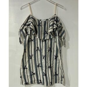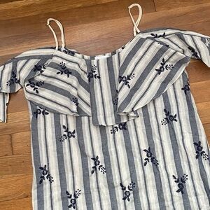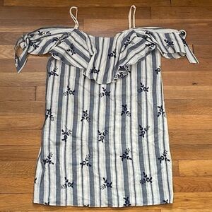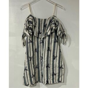 MISA Nicolette Cotton Embroidered Floral Off Shoulder Mini Dress Stripe M