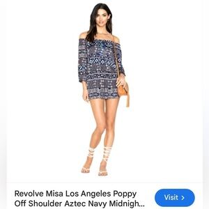 MISA Revolve Poppy Navy Aztec Off the Shoulder Dress