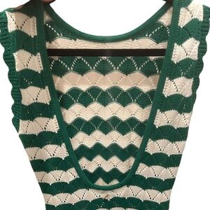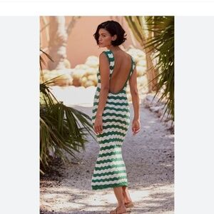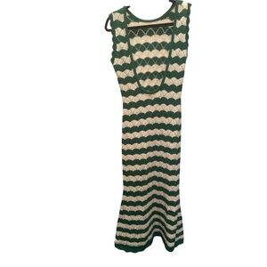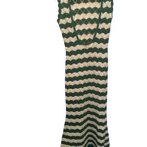 MISA Rosalia Long Emerald Striped Crochet Knit Dress