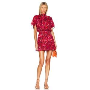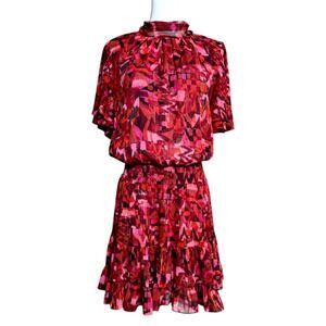 MISA Saffie Dress in Crimson Geo Size M Fully Lined Pull on Styling Mockneck