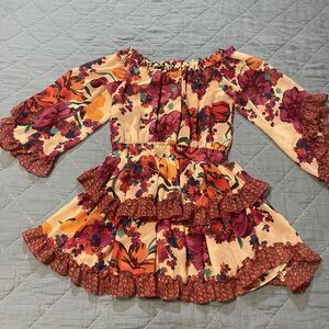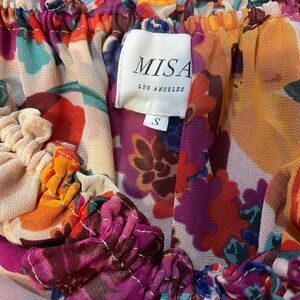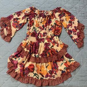 Keywords/Tags: Misa Dress, Women’s Small, Boho Mini Dress, Off Shoulder Floral, Ruffle Hem