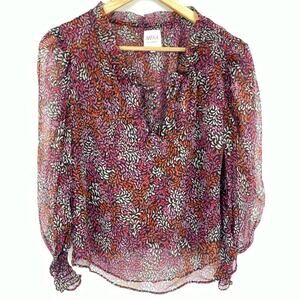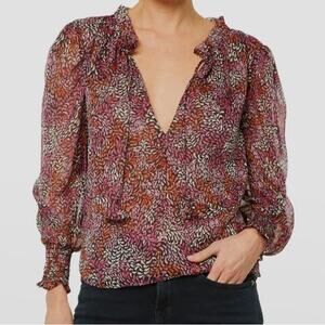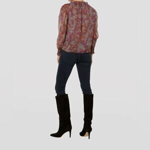 MISA Women's Red Siena Long Sleeve Autumn Leave Peasant Floral Top Size XS