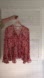 Vibrant red floral pattern, perfect for any occasion. Wear out to dinners, brunch, vacation, the options are endless. Hook and eye closures at the front as well as front tie detail. Ruffled front and sleeves.
