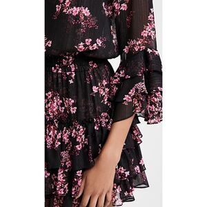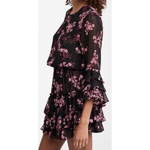 A darling dress from MISA, featuring allover floral embroidery and tiered ruffles at the skirt and cuffs. Wear it with lug-soled booties and minimal jewelry for a casual date-night look.