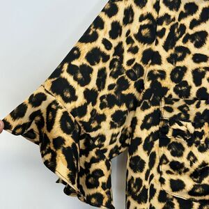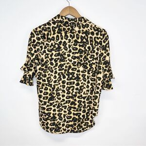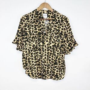 MISA Los Angeles Louise Leopard Ruffle Short Sleeve Button Down Top Size XS
