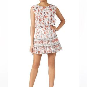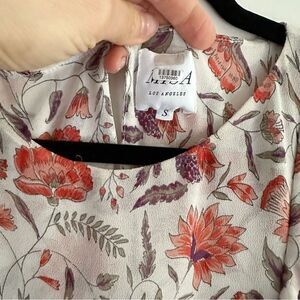 Cream printed chiffon (100% Viscose). Blouson. Sleeveless.