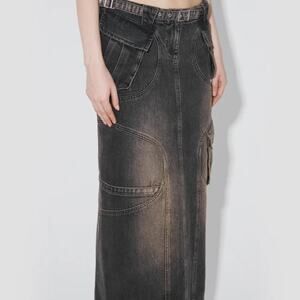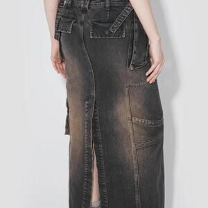 LIKE NEW MISBHV long denim maxi skirt in distressed brown wash. Jeans size 28 (M)