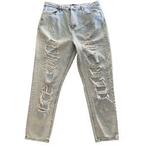 MISGUIDED Riot High Rise Mom Jean Ultra Distressed Ripped Denim Jeans 36