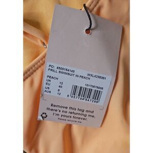 NWT. Measures 13" pit to pit & 24" shoulder to hem. No padding & has cheeky coverage on bottom. Adjustable straps. Beautiful peach color. Pictures don't do this swimsuit justice.