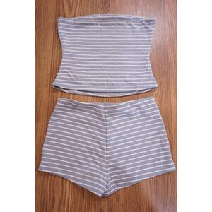 MISGUIDED Stripe Bandeau Top & High-Waisted Hot Pants Co-Ord Set, Sz S | NWOT