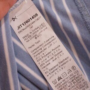 Elevate your loungewear or summer wardrobe with this stylish MISGUIDED two-piece co-ord set. Perfect for casual outings or relaxing at home, this set includes a bandeau-style strapless top and matching high-waisted hot pants in a trendy blue and white stripe design.