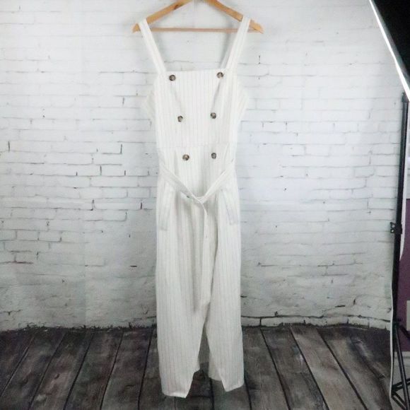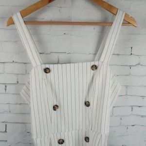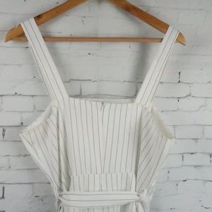 MISGUIDED WHITE WITH BLACK STRIPE SLEEVELESS BELTED MIDI DRESS SIZE 10