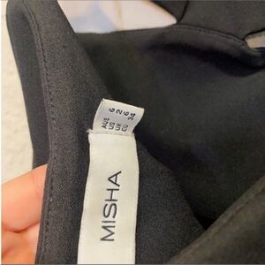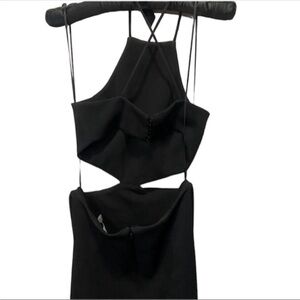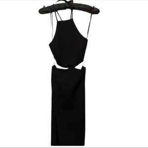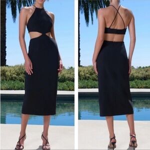 MISHA COLLECTION BETTY MIDI DRESS in Black. Made from Misha's signature bonded crepe fabric, the Betty dress features a high neck with shaped cut-away armhole, slight waist cut-outs mirror the neckline and separated back with cross over straps. The back top features hook and eye fastening with an invisible zip on the back skirt. Size 2/XS. Worn briefly once and in excellent condition. *Sold out in stores.