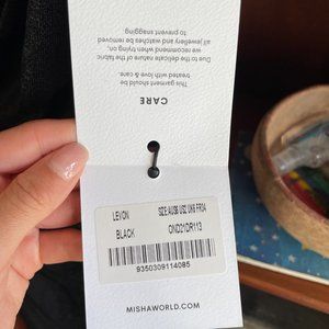 Bought this dress for a wedding but ended up wearing a different dress instead. It's a gorgeous classic black dress. The fabric is so soft and luxurious. Great piece! Tags are still attached as it has never been worn. In perfect condition, no flaws.